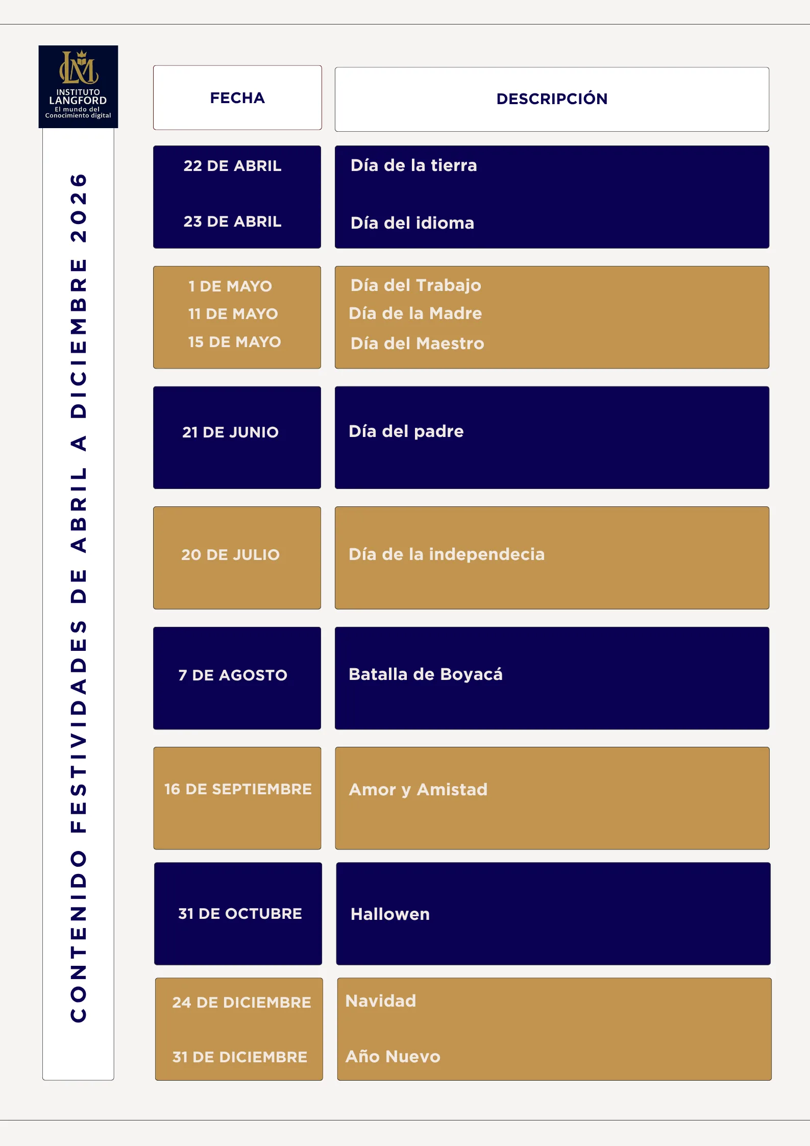 Langford es una Institución de Educación Superior de carácter tecnológico que forma talento humano con sólidos principios éticos, sociales y ambientales, y con competencias laborales que aseguran un desempeño profesional de calidad. Nuestra formación impulsa el espíritu emprendedor y brinda a los egresados las herramientas necesarias para fortalecer su proyecto de vida y mejorar sus oportunidades en el entorno laboral.